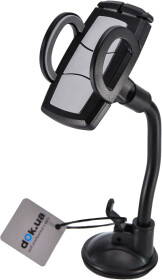 Держатель крепится к лобовому стеклу вакуумной присоски. Позиционирование устройства и угол обзора регулируется с помощью гибкой ножки и поворотной (360°) платформы для мобильного устройства. Антискользящий пластик с резиновыми уплотнителями уменьшает вибрацию, что положительно влияет на обзор устройства во время движения авто по неровностям.
