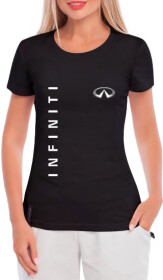 Футболка женская Globuspioner классическая Infiniti Logo Vertical черная принт спереди