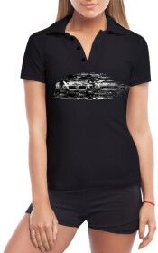 Футболка женская Globuspioner поло BMW E92 M3 Glitch черная принт спереди