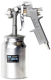 Основу ассортимента Апро составляют пневматические краскопульты, работающие от компрессора. Их подключение осуществляется через металлический штуцер, установленный на рукоятке. Ручка и курок также выполнены из металла, что обеспечивает прочность и долговечность инструмента. Бачок для краски, объем которого составляет от 100 до 800 мл, позволяет подобрать модель под задачи любой сложности.