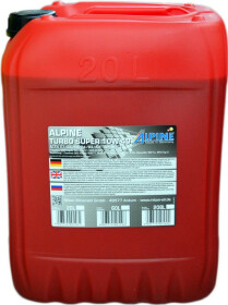 CI-4, SLМоторное масло Alpine Turbo Super 10W-40 полусинтетическое – универсальный состав для тяжелых условий работы. Подходит для бензиновых и дизельных двигателей, прошло сертификацию Американского института нефти (API CI-4, SL) и Ассоциации европейских производителей автомобилей (ACEA A3/B4, E7). Изготовлено по технологии Full SAPS, в связи с чем не рекомендуется использовать его в двигателях автомобилей, выхлопная система которых оборудована сажевыми фильтрами.