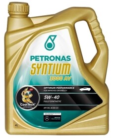 SNPetronas Syntium 3000 AV 5W-40 - синтетическое моторное масло для всех типов двигателей легковых автомобилей, включая бензиновые и дизельные двигатели (с системой обработки отработавших газов), а также для ультрасовременных автомобилей с системами впрыска топлива, многоклапанными двигателями, турбонагнетателем или механическим нагнетателем.