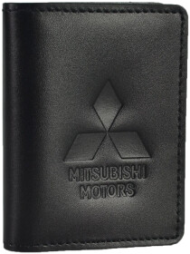 Обложка для прав и техпаспорта Poputchik 5164-036 с логотипом Mitsubishi цвет черный