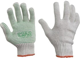 Перчатки рабочие Сила хб с точками ПВХ белые с зеленым