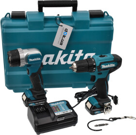 Потрібно відзначити відмінну комплектацію. Крім двох літій-іонних акумуляторів ємністю 1,5 Ач, зарядного пристрою до них та пластикового кейсу, в комплекті є потужний ліхтар. За зовнішнім виглядом він дуже схожий на сам шурупокрут, його зручно тримати в руці, можна поставити поруч. Водночас під патроном шурупокрута встановлений світлодіод, який також здатен підсвітити робочу зону.