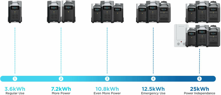 EcoFlow DELTA Pro позволяет расширить емкость до 25 кВт-ч, что может обеспечить функционирование освещения, а также оптимально подходит для экстремальных нагрузок на протяжении нескольких дней. Благодаря этому вы защищены от любой неприятной ситуации.