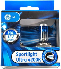Опис товару: Автолампа General Electric Sportlight Ultra H4 P43t 60 W прозоро-блакитна 50440sbu2d