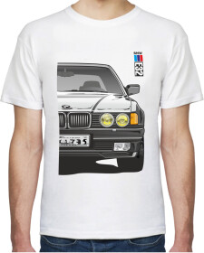 Футболка чоловіча Avtolife BMW E32 Stock White біла принт спереду і ззаду