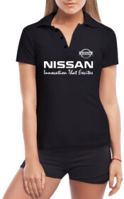 Футболка жіноча Globuspioner поло Nissan Innovation That Excites чорна принт спереду