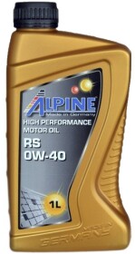 Alpine RS 0w-40 – це синтетична моторна олива, рекомендована для бензинових та дизельних двигунів (з турбонаддувом або без) легкових та легких комерційних автомобілів. Відповідає суворим вимогам галузевих стандартів ACEA A3/B4 та API SN/CF та може використовуватись у моторах, яким необхідні ці специфікації. Крім того, олива відповідає вимогам виробників: