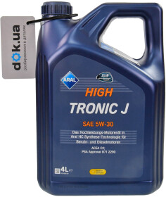 C2Моторное масло Aral HighTronic J 5w-30 – синтетическое моторное масло. Тонкой прочной плёнкой покрывает трущиеся детали двигателя, защищая от износа и отложений.