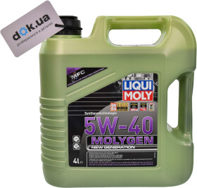 CF, SNLiqui Moly Molygen 5W-40 лінійки New Generation - синтетична олива такої в'язкості є однією з найпопулярніших як в Україні, так і на європейському ринку, що оптимально підходить до вітчизняного клімату. Застосування HC-технологій, а також спеціальних фірмових присадок на основі технології Molecular Friction Control уможливлює відповідність сучасним специфікаціям API / ACEA. Чудові захисні властивості завдяки легуванню поверхонь деталей двигуна іонами молібдену та вольфраму є однією з, проте далеко не останньою позитивною властивістю цієї моторної оливи. Рекомендована для сучасних бензинових і дизельних двигунів із турбонагнітачем і каталізатором або без них. Особливості лінійки Моліген Нью Дженерейшн - нормальна робота в умовах нестабільної якості палива, застосування біопалива.