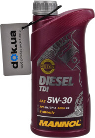 CH-4, SNМоторна олива Mannol Diesel TDI 5W-30 синтетична розроблена із застосуванням ester-вмісних частинок і багатофункційного пакета присадок. Придатна для сучасних двигунів, які використовують бензин або дизель, з турбонаддувом чи без. Особливо рекомендована для турбодизельних двигунів із прямим упорскуванням. Використовується у двигунах: