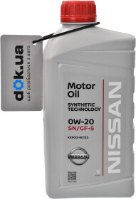 Моторне масло Ніссан Мотор Ойл SN / GF-5 0W-20 синтетичне відповідає специфікаціям API, SN ILSAC GF-5. Оригінальність продукту підтверджують рекомендації самого автомобільного концерну Nissan, який радить це моторне масло для багатьох нових автомобілів.
