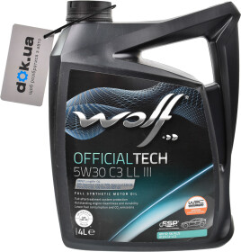 SN+, SPМоторну оливу Wolf Officialtech C3 LL III 5W-30 синтетичну замовив концерн VAG для двигунів своїх автомобілів, які призначені для експлуатації у важких умовах, мають невеликий робочий об'єм, високий рівень форсування, турбонаддув та системи доочищення відпрацьованих газів. Основною вимогою було збільшити ресурс деталей двигуна та захистити фільтри та каталізатори від негативного впливу.