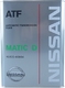 Продукт Ниссан/Инфинити ATF Matic D допускается лишь для использования в Nissan и Infinity ввиду специфики строения вариаторной трансмиссии Ниссан и отличия её от прошлых поколений АКПП. При использовании можно быть уверенным в надежности масла. Поскольку температура застывания равна -55 °C, оно не подведет в самые суровые зимы. Ровно как и при 40 °C оно сохраняет необходимый коэффициент вязкости, без пенообразования и пузырьков воздуха в составе.